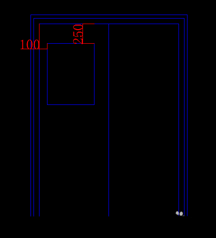 6、依次向内偏移10,40,10,并调用修剪命令进行修剪。