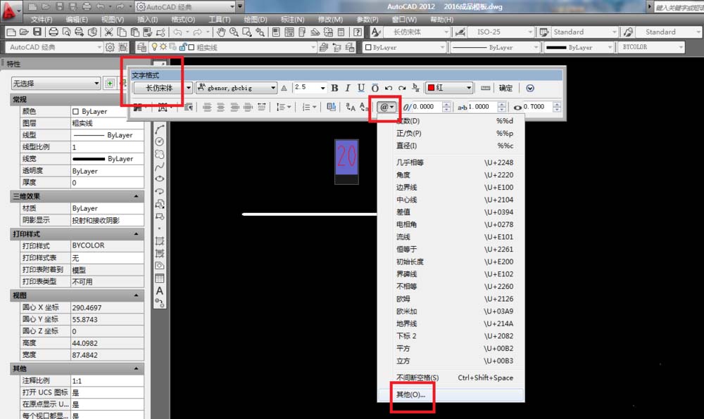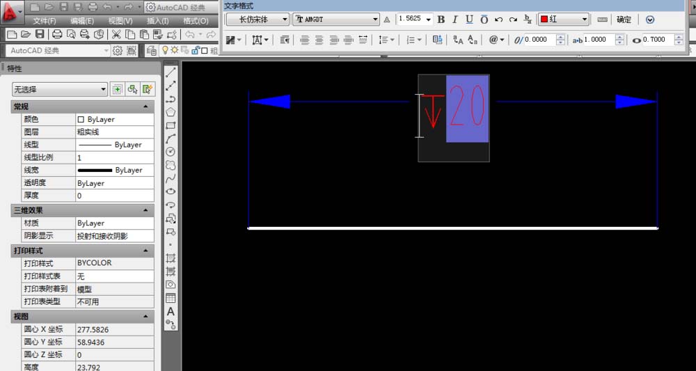 7、如下图所示,回到了CAD的标注,在20前面直接“ctrl+v”,粘贴完毕。
