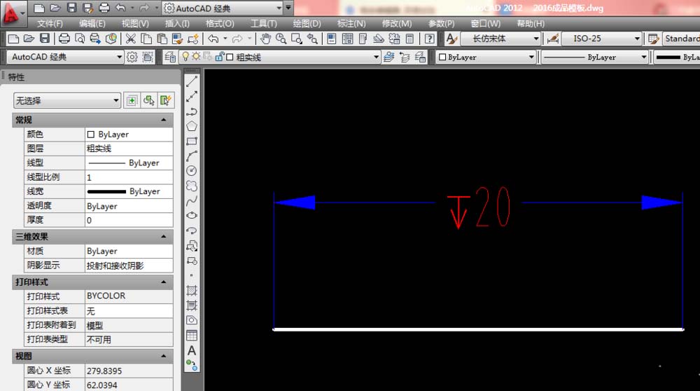 8、如下图所示,完成标注,这个标注中就有了深度符号,这个标注的意思就是深度20。