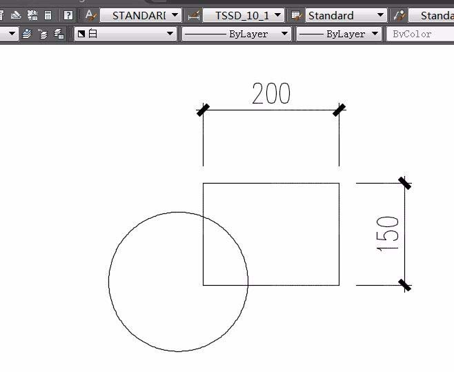 1、打开CAD,画一个简单图形(示例画了一个200x150的矩形),并对图形的外形尺寸进行标注。