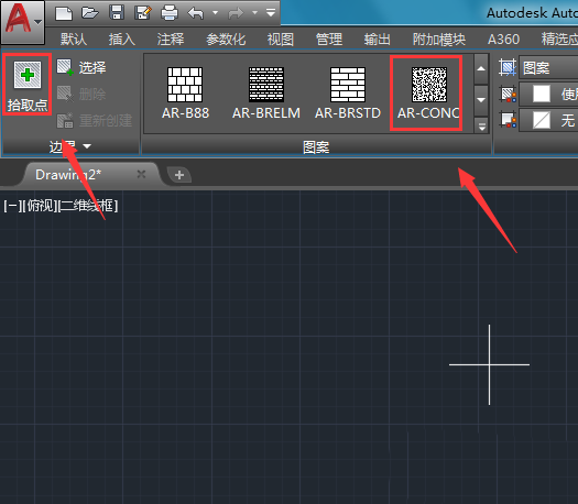 4、点击填充选项我们选择需要的填充图案,然后找到拾取点选项,如图所示: