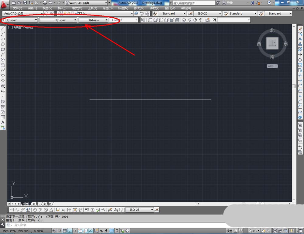 1、打开AutoCAD2012软件,点击【直线工具】,在作图区域绘制一条线段,线段长度设置为:2000mm(如图所示);