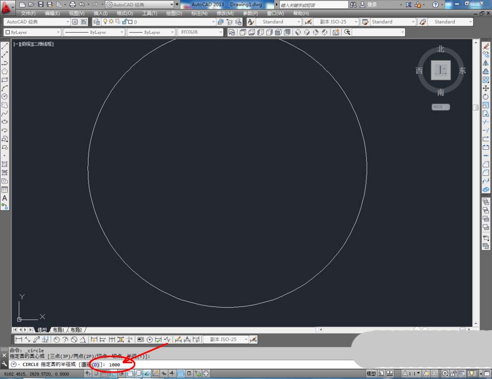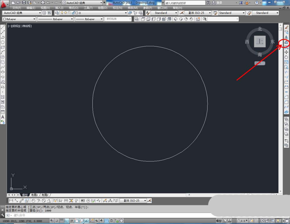 3、点击【圆形工具】,在作图区域绘制一个半径为1000mm的圆形图案。点击右边工作区中的【偏移】,设置偏移量为:500mm,选中圆形进行偏移操作(如图所示);