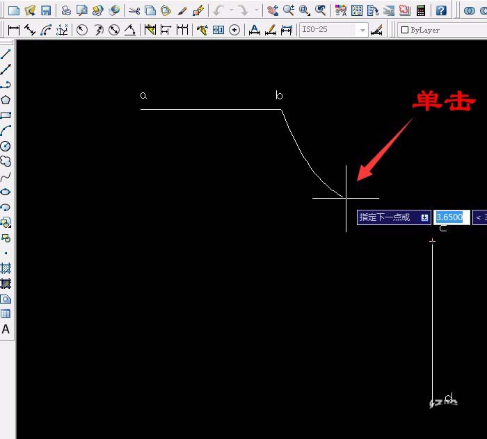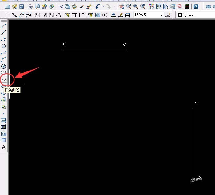 1、用“直线工具”两条直线,水平ab线垂直cd线(没有具体尺寸画大概),再用“样条曲线 ”画出bc曲线和ad曲线。