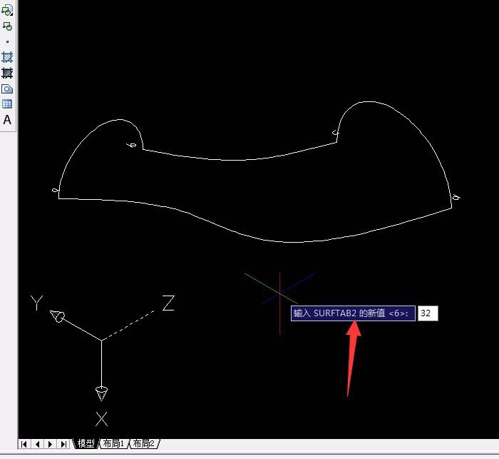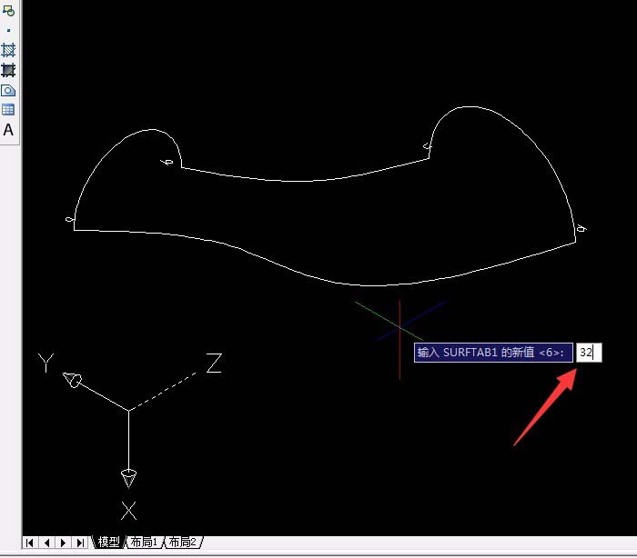 5、输入命令:SURFTAB1(最后一个是数字1,设置经线条数)输入32(默认6),输入命令:SURFTAB2后输入32。