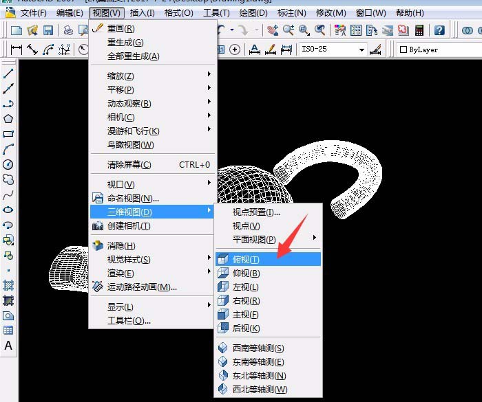 8、单击“视图”菜单→三维视图→俯视,缩小绘图区,绘制直线和样条曲线。