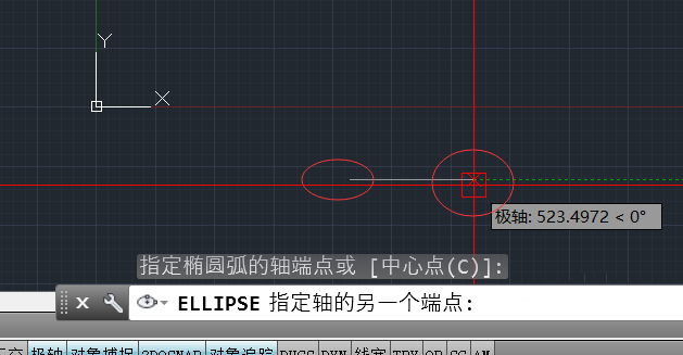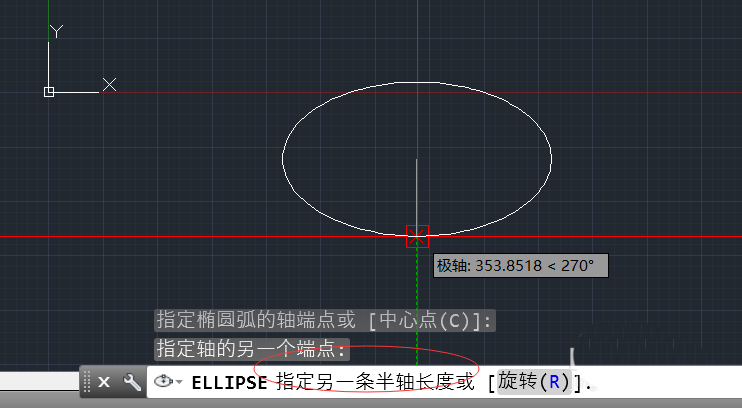 2、然后依据下方命令提示栏中的操作,绘制一个你想要的尺寸的椭圆,这里每次操作完成一步,只需要点击空格即可。