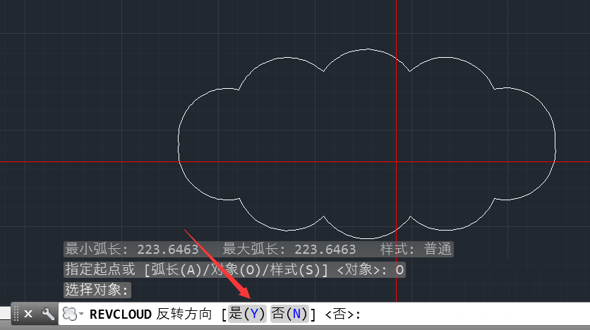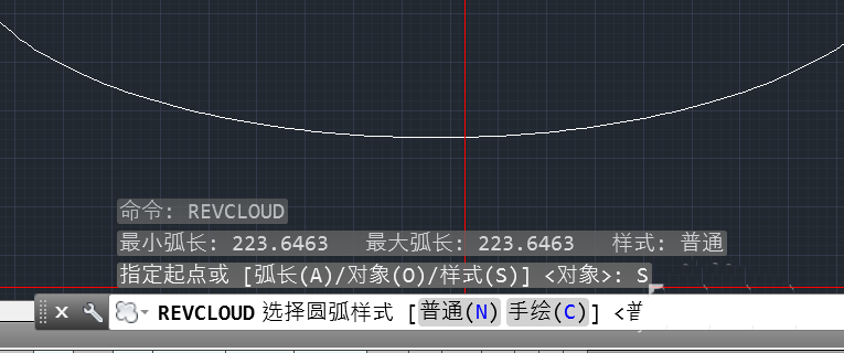 4、点击空格之后,即可进入该命令的程序,然后可以选择A 更改弧长S更改样式,将修订云图的相应设置更改为你想要的参数。