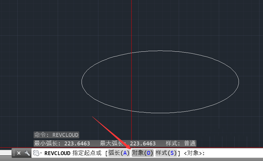 5、修改完成之后,在该命令中,选择命令O对象,即可进入对象命令中,选择你要修改的椭圆的对象,选择完成之后,点击空格,即可完成修改。