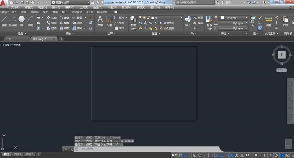 3、接下来绘制,点击直线任意一点输入@1000,0