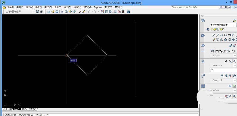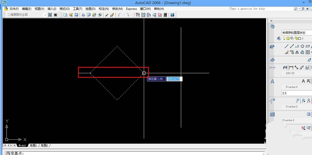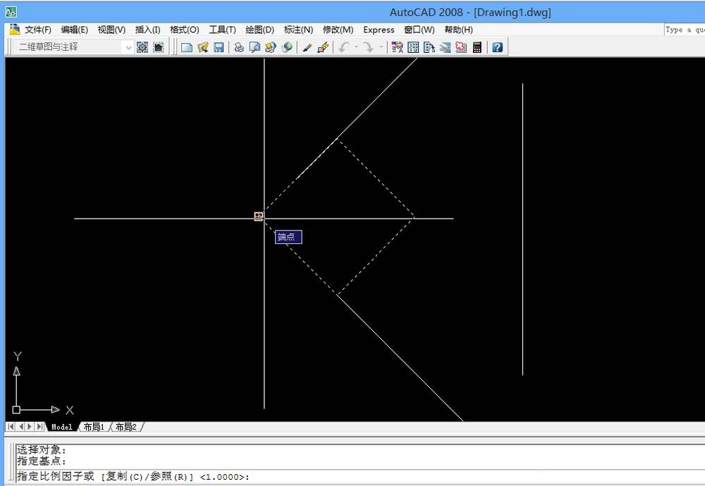 5、提示要指定顶点,我们选定最左边的顶点,这一个点就是固定的,缩放的候,然后再选择端点,我们选择最右边的顶点