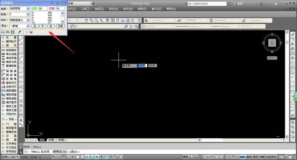3、在系统弹出的墙体设置窗口,我们可以进行墙体的宽度设置,宽度设置可以设置左宽和右宽,帮助我们更加准确的处理墙体的细节部位,完成设置后,即可开始绘制。