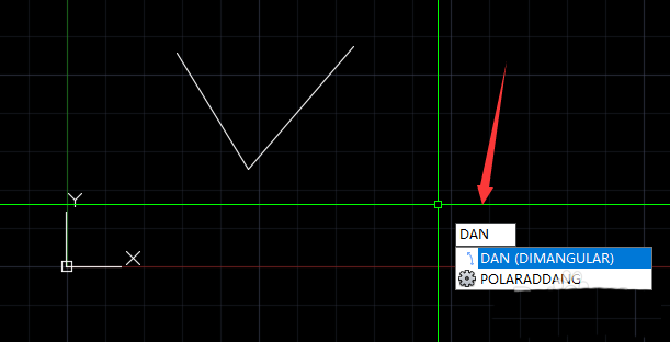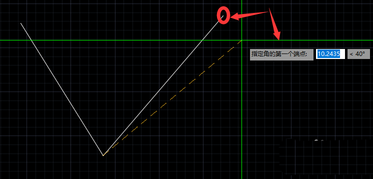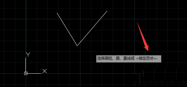 1、打开cad,有如下所示一角,外交为大于180度的钝角。