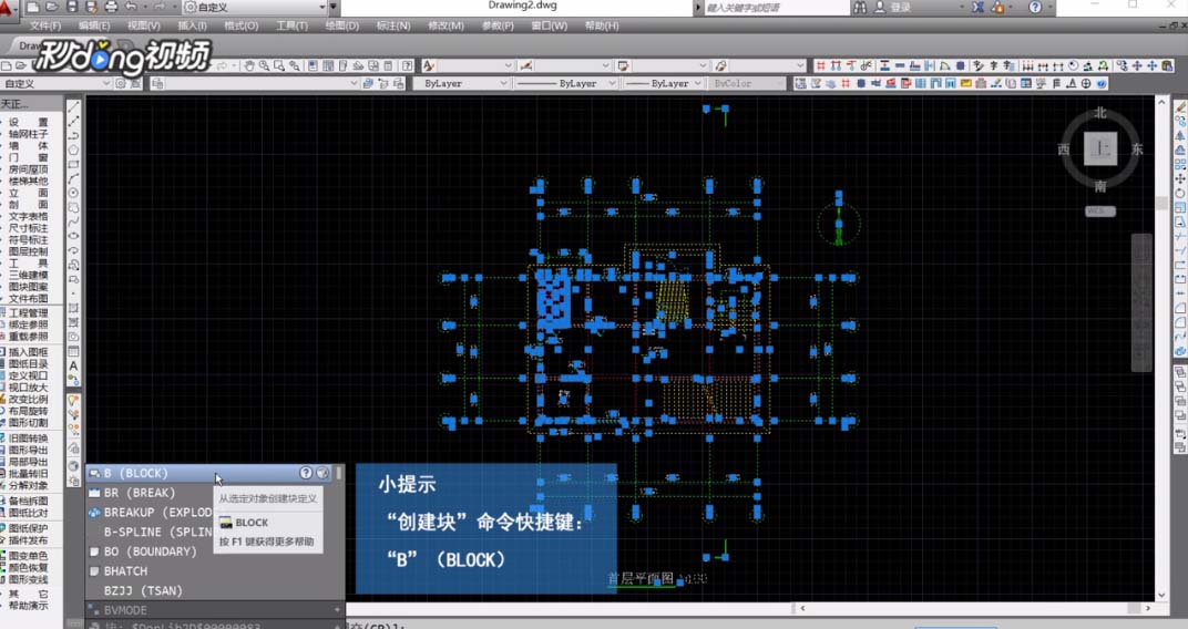 2、直接输入“创建块”命令快捷键:“B”,按下空格键确定