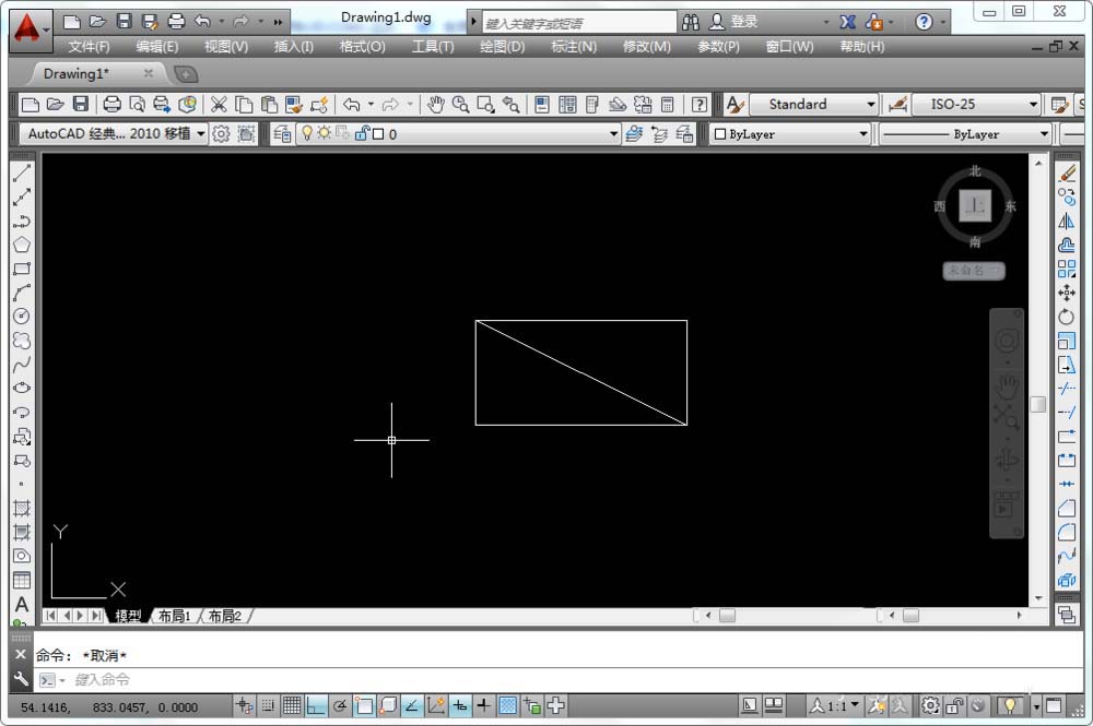 2、在矩形内画出一条从左上角到右下角的对角线;