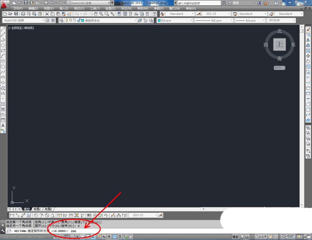 2、点击【矩形工具】,按图示在命令栏输入:d并按下空格键,输入长度值:800并按下空格键,继续输入宽度数值:750并按下空格键,完成矩形图案的绘制。选中图案,点击右边工具栏中的【分解工具】,将图案炸开(如图所示);