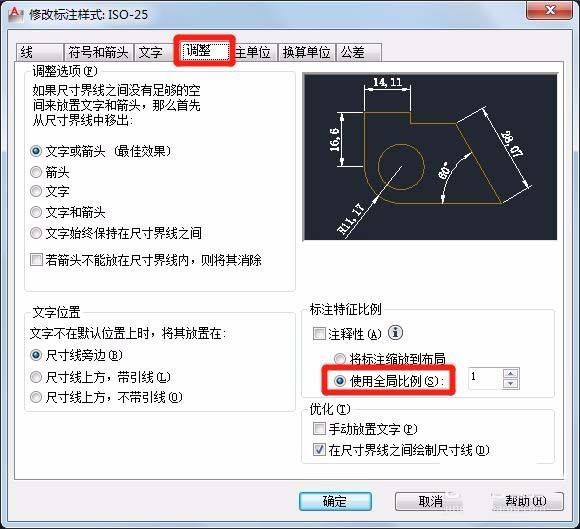 2、在“全局比例”参数为“1”时,针对不同比例的尺寸标注,都要分别修改“线”、“符号和箭头”、“文字”选项卡中的各种参数,费时费力。