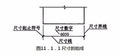 以建筑行业制图为例,先认识一下尺寸标注的基本构成部分。(下图摘自《房屋建筑制图统一标准》GB\T50001-2017)