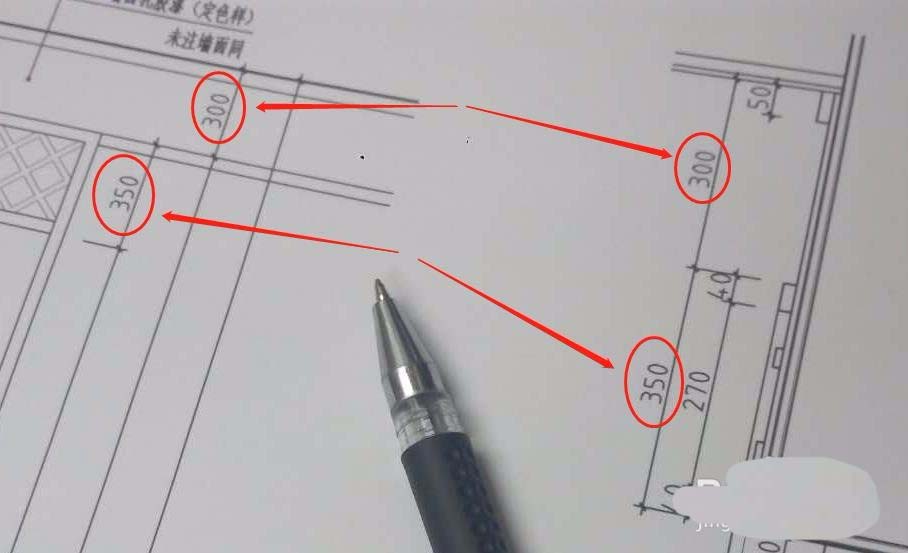 在图纸中,不同比例的标注,文字高度、箭头符号的大小都是一样的。不一样的只是比例,对应参数设置中的“全局比例”。下图中,同样是“300mm”、“350mm”的尺寸,右侧剖面大样(1:10)比左侧立面图(1:20)放大一倍,但文字高度、箭头符号等所有标注元素都保持了同样的大小和外观样式。