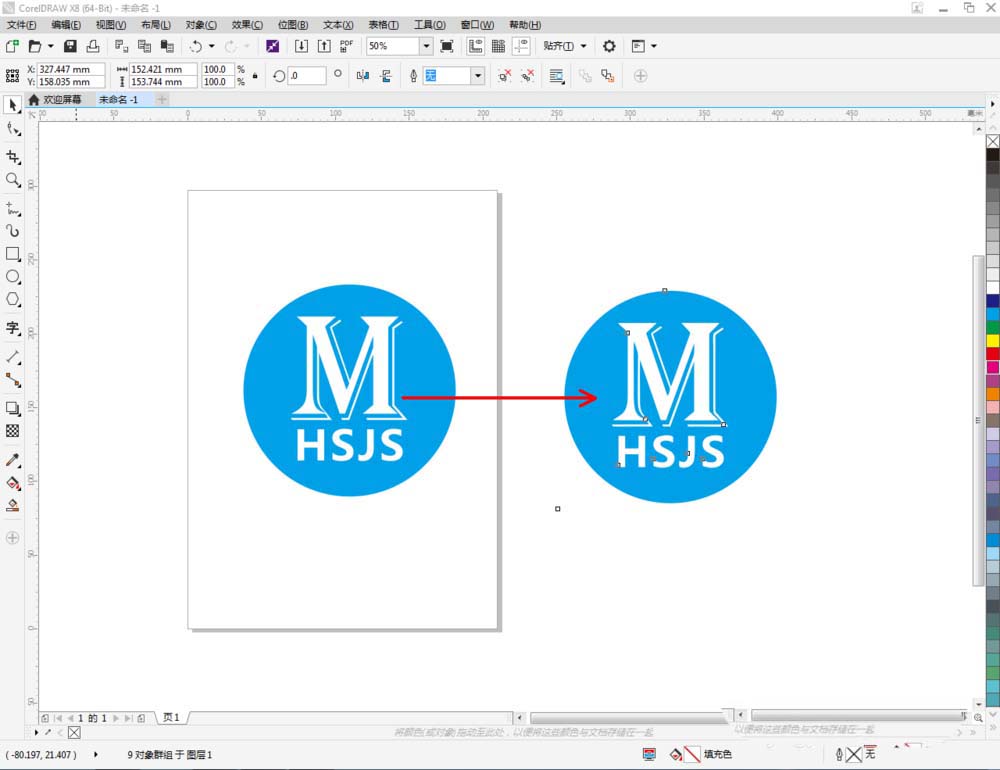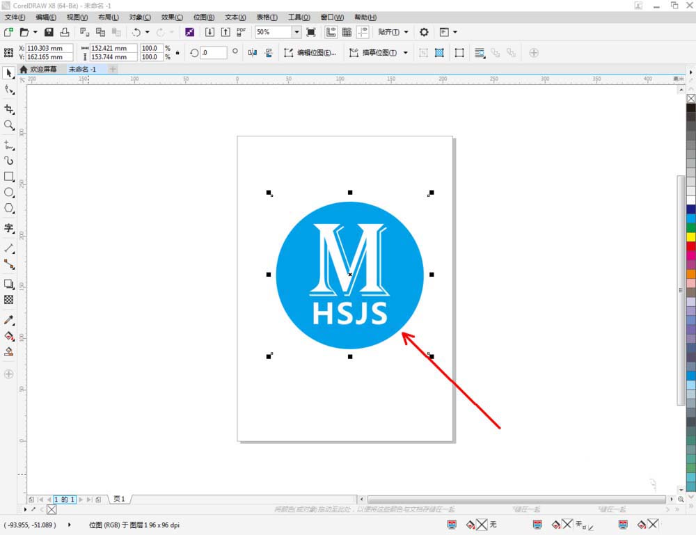 2、打开CorelDRAW X8软件,新建一个cdr文档。完成后,将logo图片拉至软件作图区域(如图所示);