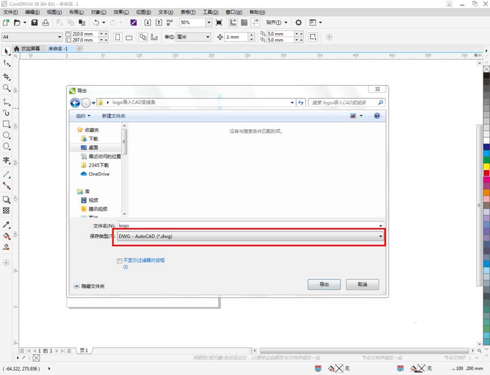 4、点击【文件】-【导出】,导出格式设置为:dwg格式(如图所示);
