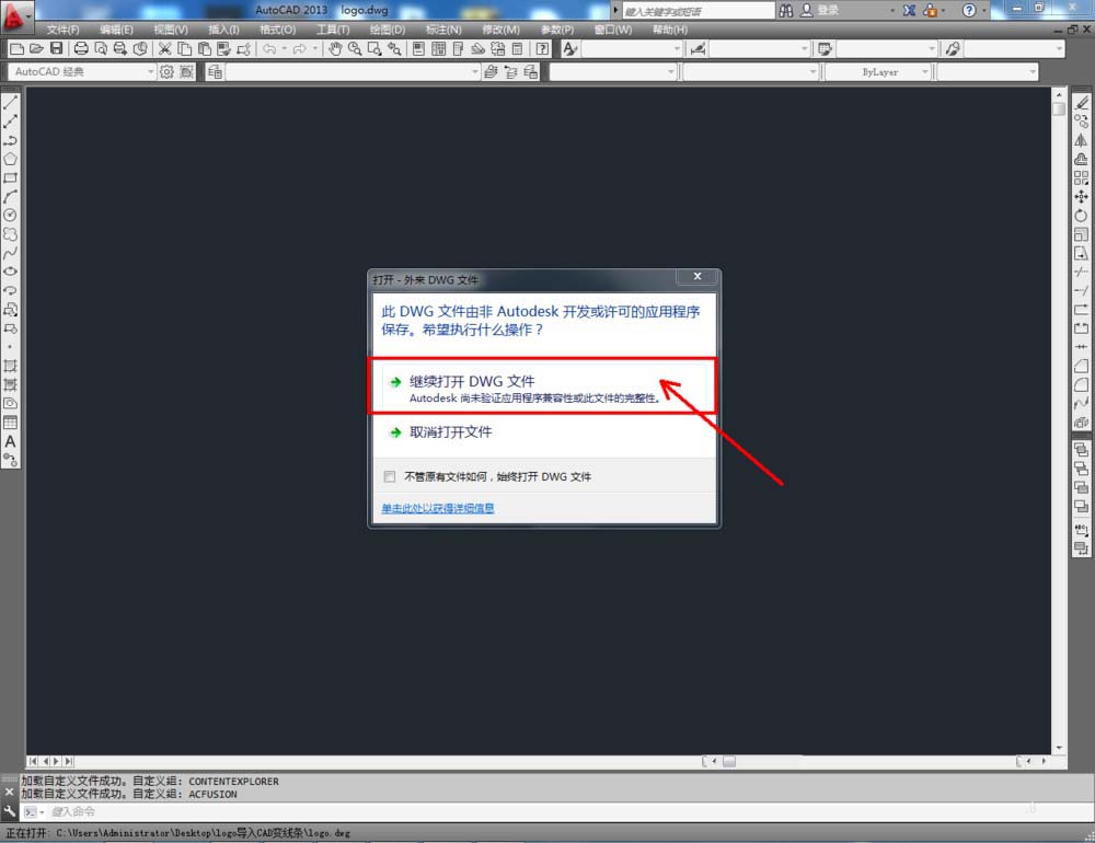 5、打开AutoCAD软件,将刚刚制作好的dwg文件导入,这样我们的logo图案就转成线条了,是不是很方便呢?快快试试吧!