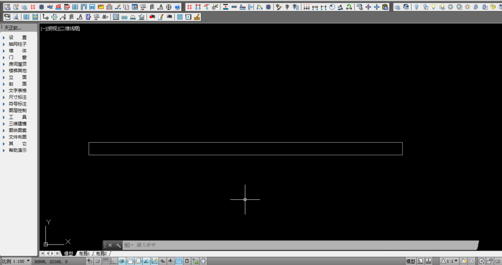 1、打开天正建筑,并绘制一面墙,如下图所示