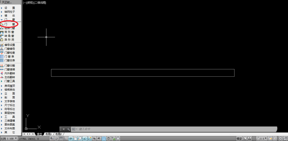 3、打开“门窗”编辑页面,然后点击“插矩形洞”,如下图所示