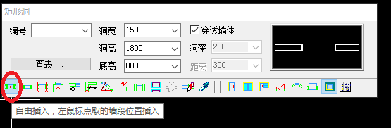 5、点击“自由插入”,插入矩形洞,如下图所示