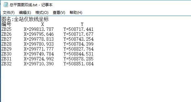 1、将全站仪放线用的坐标导出到记事本或者EXCEL中。