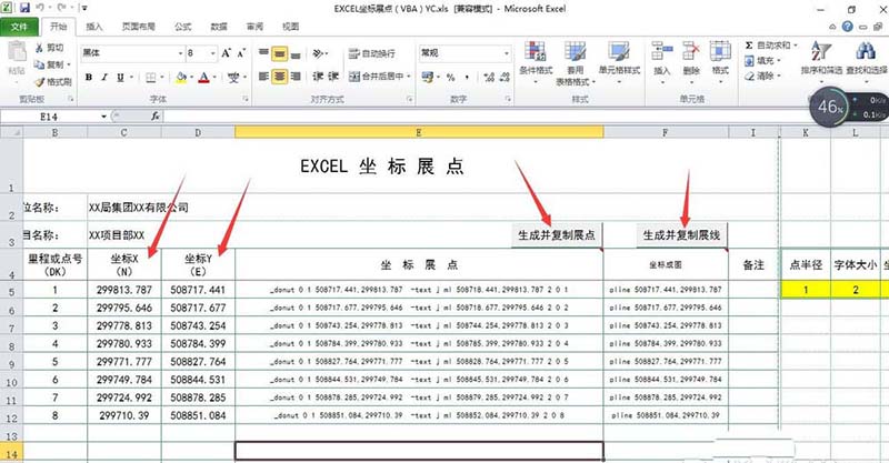 2、将对应的x、y轴复制到表格中,点击生成并复制展点,设置点的大小和半径,点击生成并复制展线。(表格计算程序可自行在网上下载)