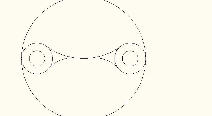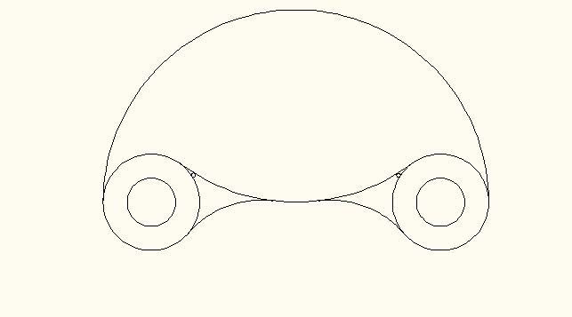 5、在左边圆弧里面画相切相切半径2的圆并镜像,然后用两点画圆,两点分别为最左边的圆的端点和最右边圆的端点,如图所示。