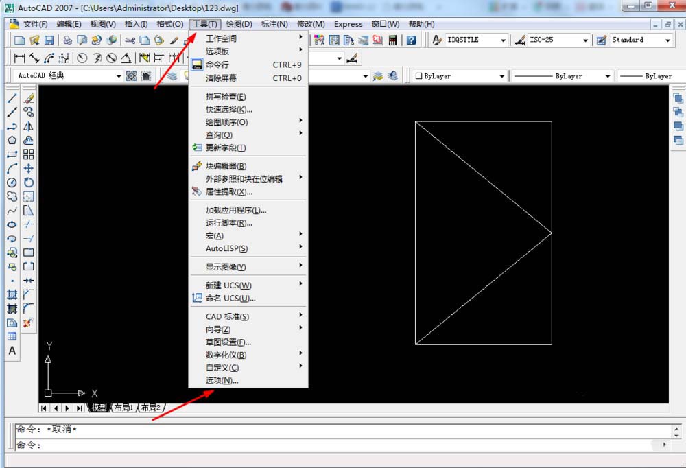 2、接下来我们点击工具栏中工具选项下的选项按钮,如图所示;