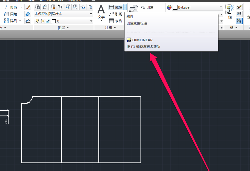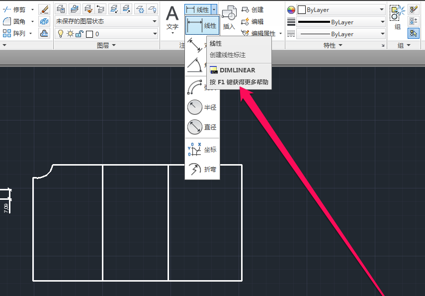 4、点击线性标注按钮,将鼠标移动图形上。