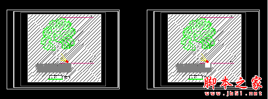 3、同理操作视口2,只冻结“填充”层,便会得到树及灯具同时存在的图纸,视口1及视口2如下图所示。