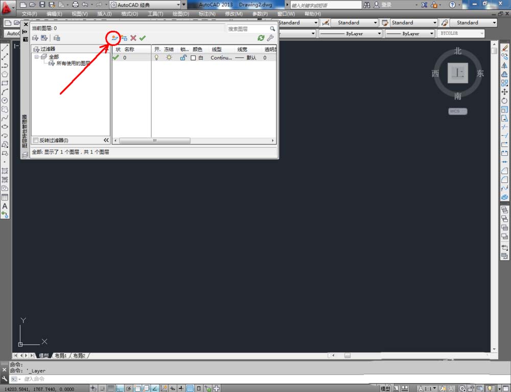 1、打开AutoCAD 2013软件,点击【图层特性管理器】,点击【新建图层】,将图层命名为:卡座。点击色块,按图示设置一个图层颜色,完成卡座图层的设置(如图所示);