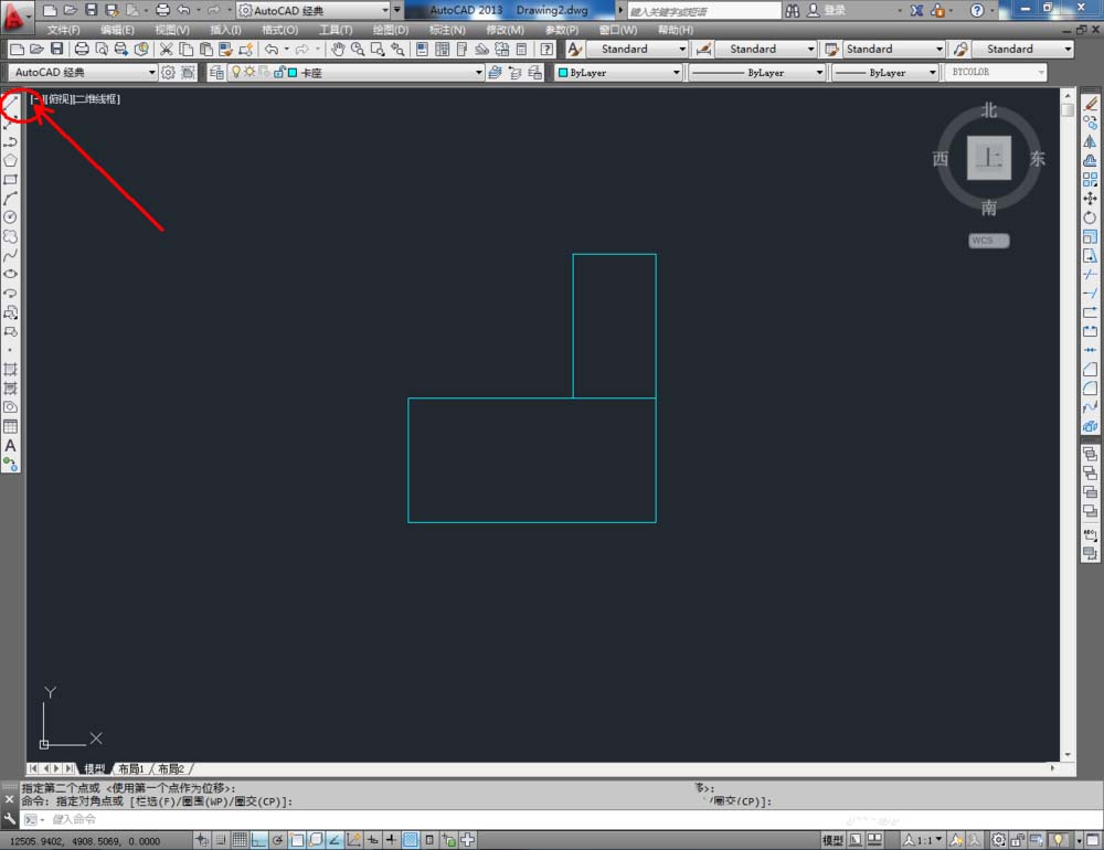 3、点击【直线工具】,按图示绘制出一条屏风位置的线段。完成后,框选整个图案,在命令栏输入:b并按下空格键,将图案转换为块并将块命名为:卡座(如图所示);