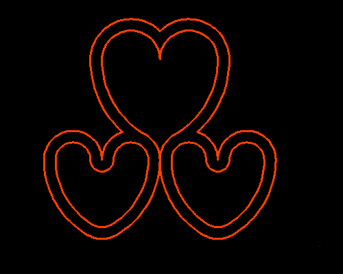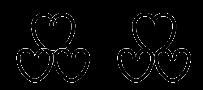 7、上面的心形,以10为距,向外偏移。下面的心形,以10为距,向内偏移。连接过渡处,修剪多余线条。最后得到三个相互连通的心形。
