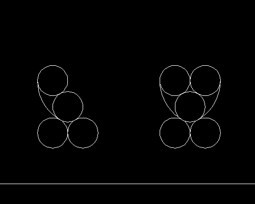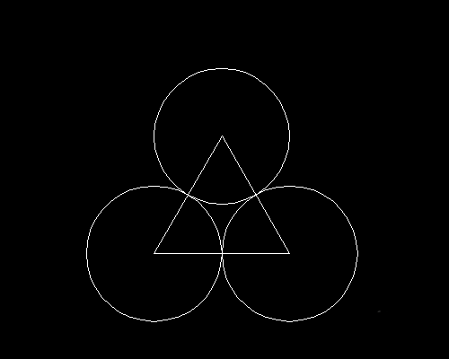 1、画三个等径圆,两两相切。圆半径25,连接圆心成等边三角。