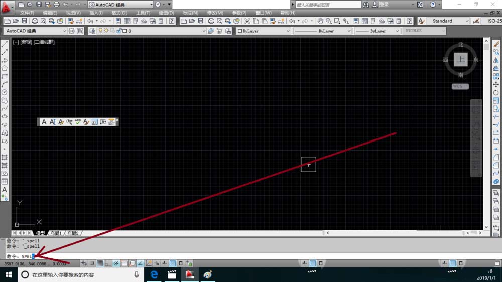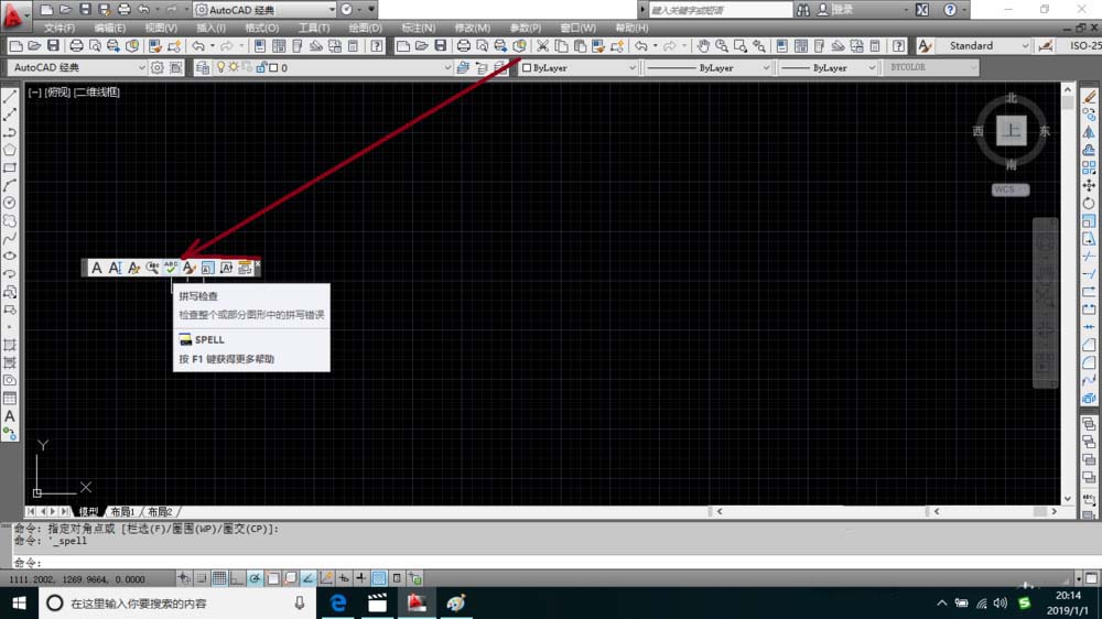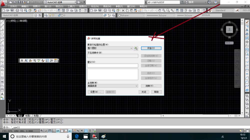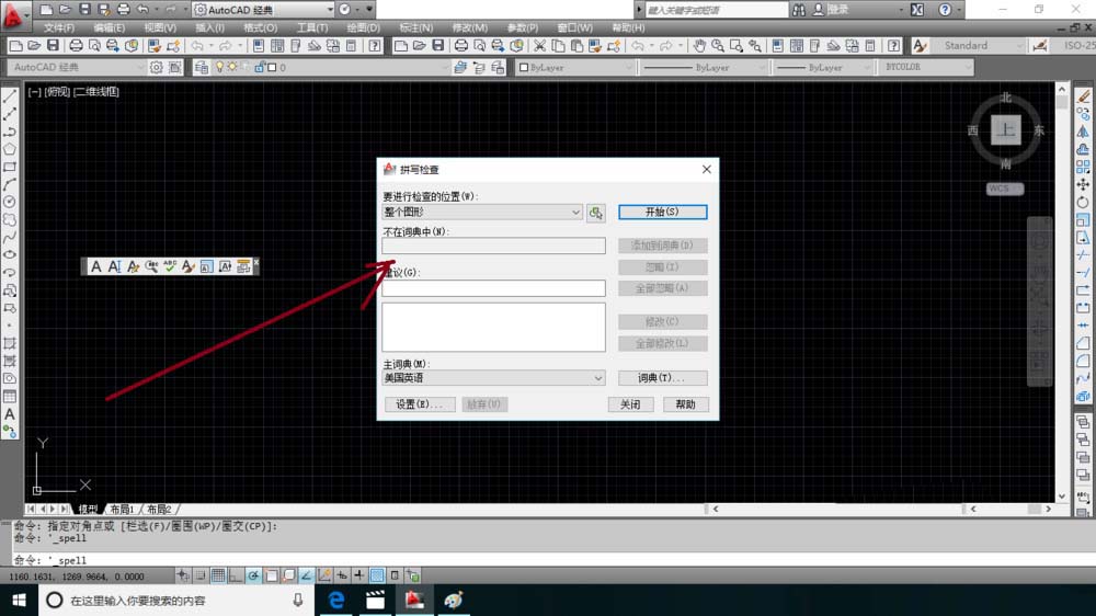 6、在软件命令栏中输入spell之后按回车键也可以打开拼写检查对话框。