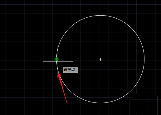 3、然后将鼠标移动到圆上会显示圆心位置,进行绘画多边形内接于圆。
