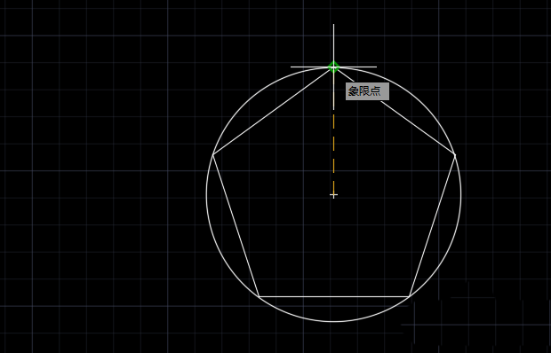 2、然后选择如下图位置以圆圆心绘制五边形,输入边数5(快捷命令POL)。