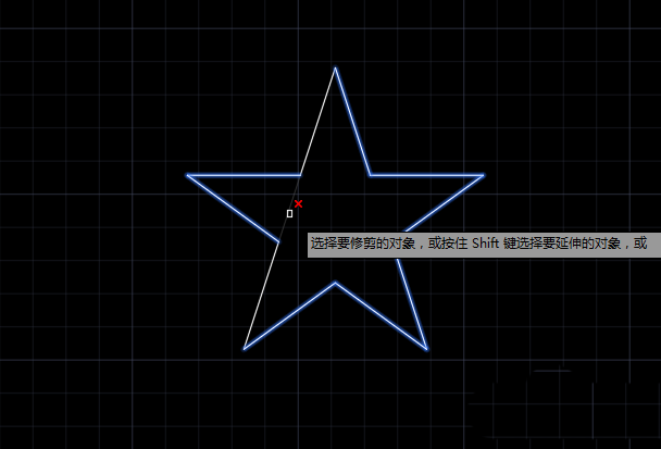 5、点击选择裁剪命令,选择对象后将多余的线删除。