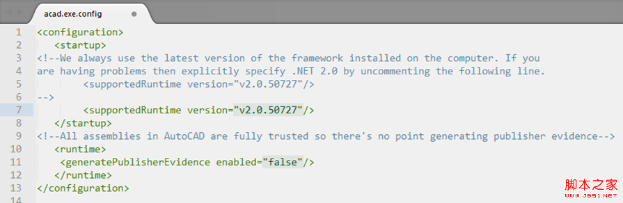 修改AutoCAD的配置文件,这个文件在AutoCAD的安装目录下。打开配置文件(acad.exe.config)如下: