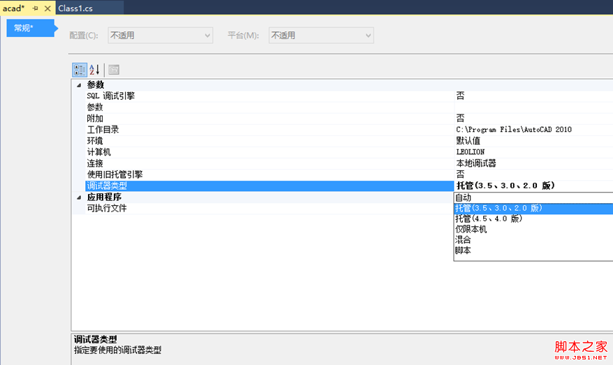 关于问题1,断点不起作用的原因归结为Visual Studio 2010不会选择正确的版本的调试器,在调试时启动了默认的debugger(v4.0),此调试器不会看到针对旧版本的.NET 项目中的断点,但是为了让我们的.NET应用程序能在AutoCAD 2010等上运行,我们需要.NET Framework 2.0( 3.5也是运行在CLR 2.0之上的)。