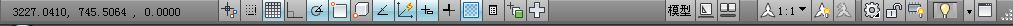 状态栏用于显示或设置当前的绘图状态。状态栏上位于左侧的一组数字反映当前光标的坐标,其余按钮从左到右分别表示当前是否启用了捕捉模式、栅格显示、正交模式、极轴追踪、对象捕捉、对象捕捉追踪、动态UCS(用鼠标左键双击,可打开或关闭。)、动态输入等功能以及是否显示线宽、当前的绘图空间等信息。