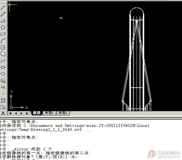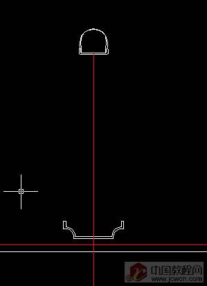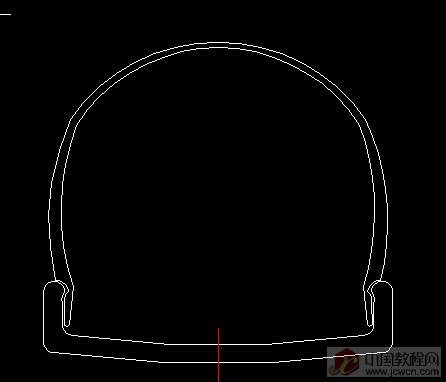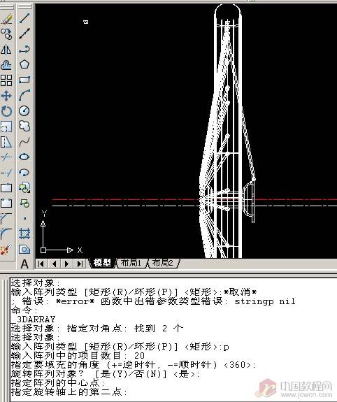 如图绘出中心轴的旋转二维图,旋转轴为红色中心线!再次使用pedit把它编辑成多段线!