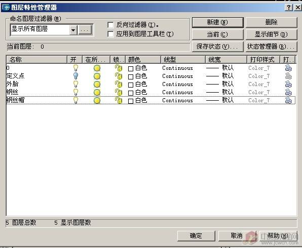点击图层特性管理器,弹出如下图窗口,新建两个图层,名称如下图所示!