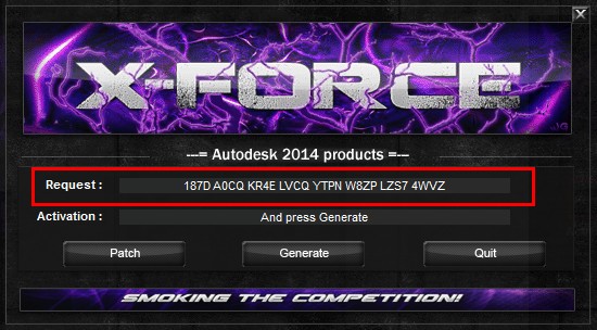 4.先粘贴激活界面的申请号至注册机中的Request中(下图红框处)