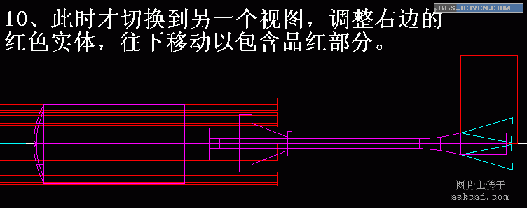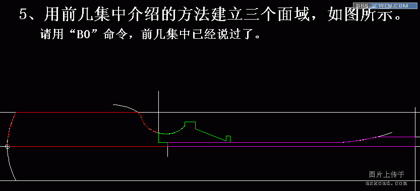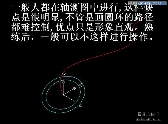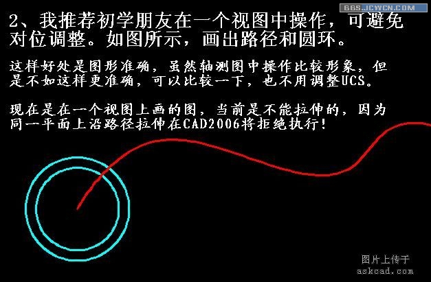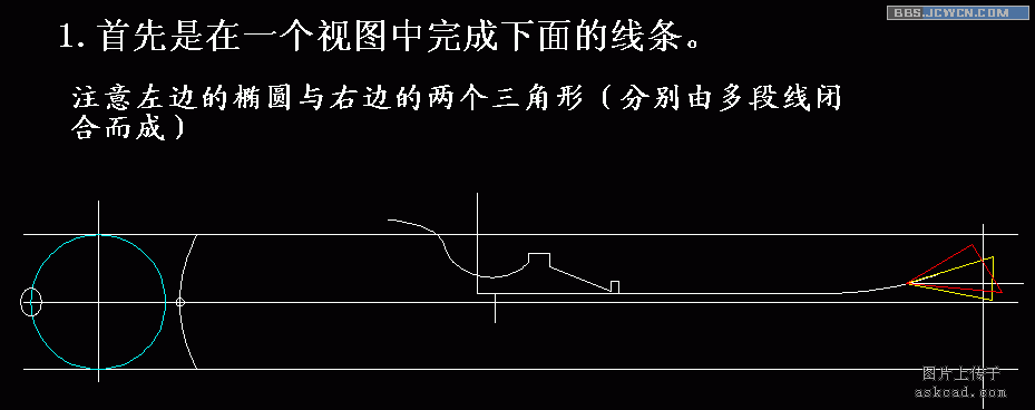 有朋友会问,为什么不在主视图画好后,切换到俯视图中去操作呢。这种操作我也常用的,只是对于这样的例子我一般不切换视图,虽然切换视图有其优点,但切换后统统重叠成一条线,要寻找自己想要那条线,不容易找到!结果转来转去,又到轴测图中进行了。